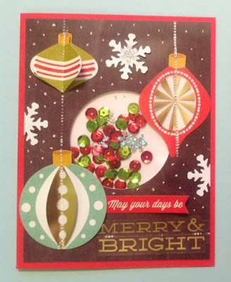 For the inside I carried over the same fun theme using some of the same papers as the front to add some trim strips.  I used a spellbinders die cut for the ornaments down the strip stamping each one with an owl face again from CDD "Owl-idays" stamp set.  I placed 1 of each color of the sequins to top off each hat and used a dark green sharpie to dot the center of each sequin.  I used the sentiment Happy Owl-idays from that same set.  At the bottom right corner I decided to use 2 stamped ornaments from CDD "Chill Out" stamp set onto coordinating papers.  I used my SNC2 to cut them out and inked them and cut inside piece out by hand ..... tricky but can be done lol